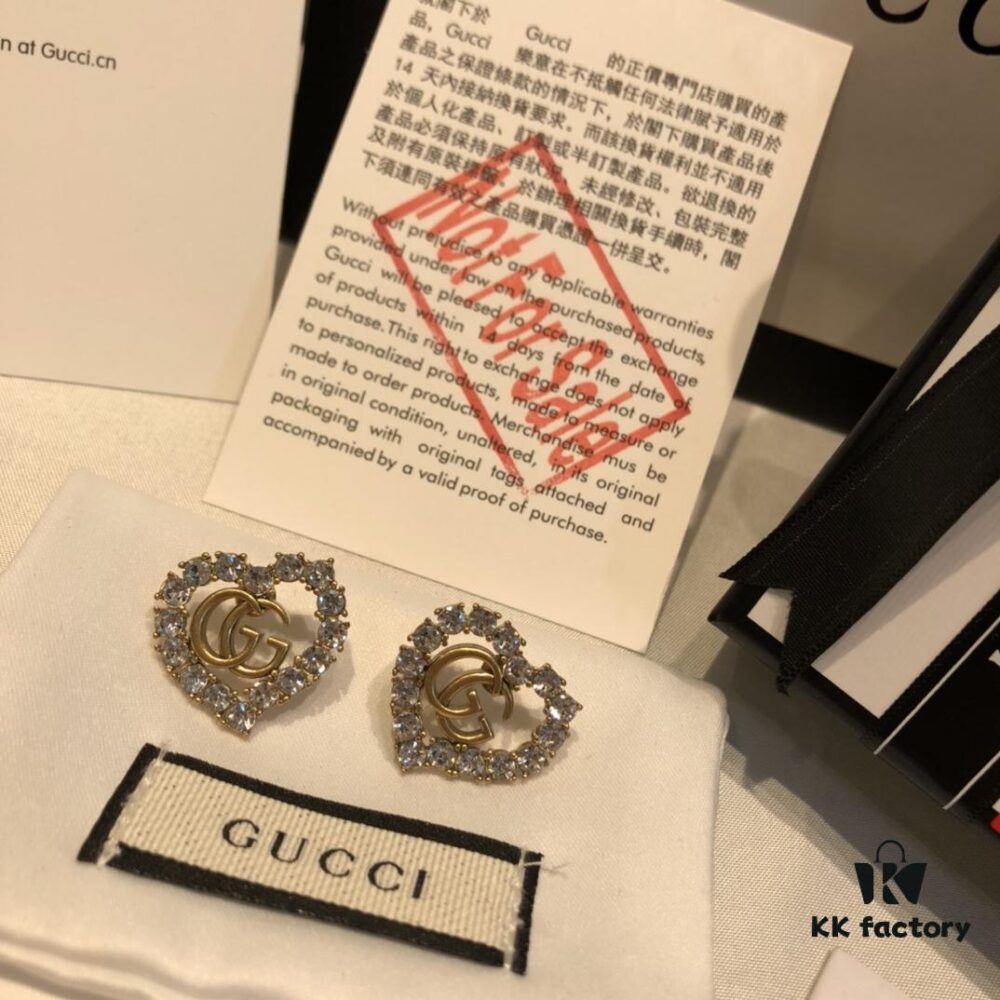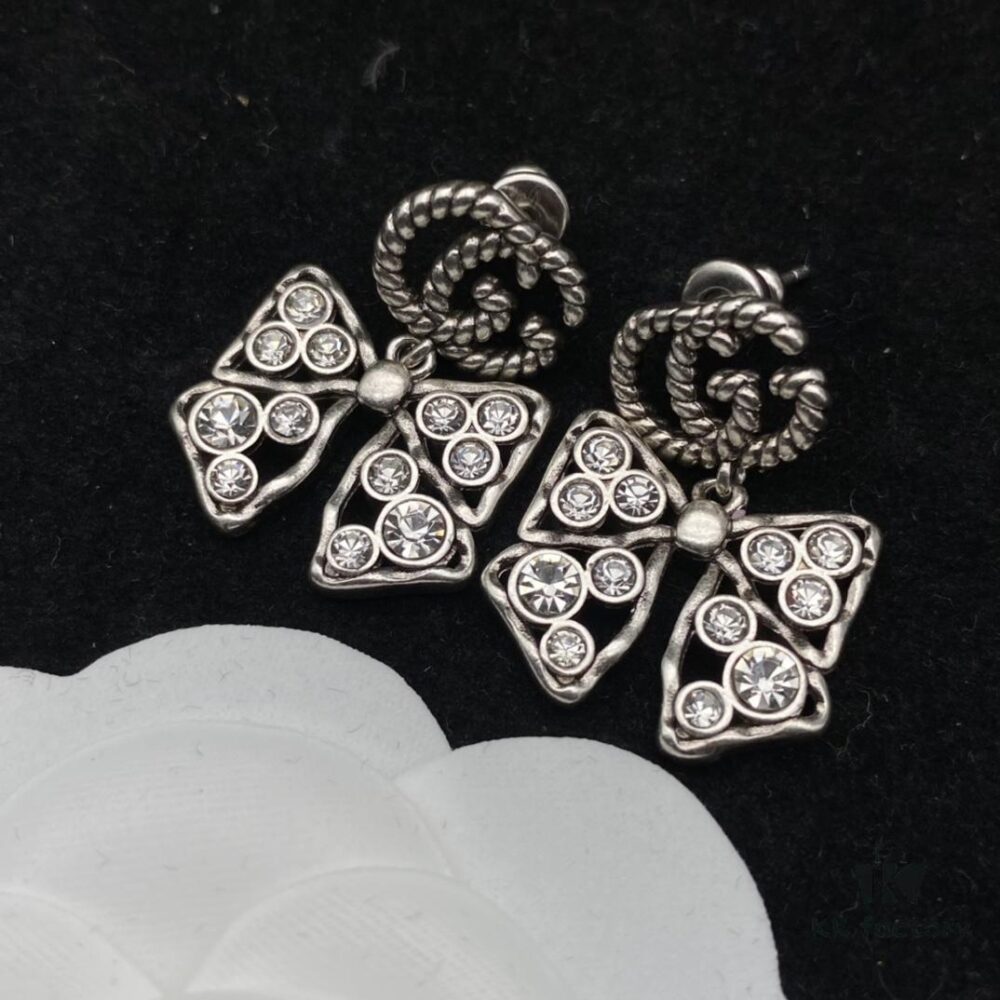 Gucci Double G Bow Diamond-Paved Elegant Stud Earrings 💚