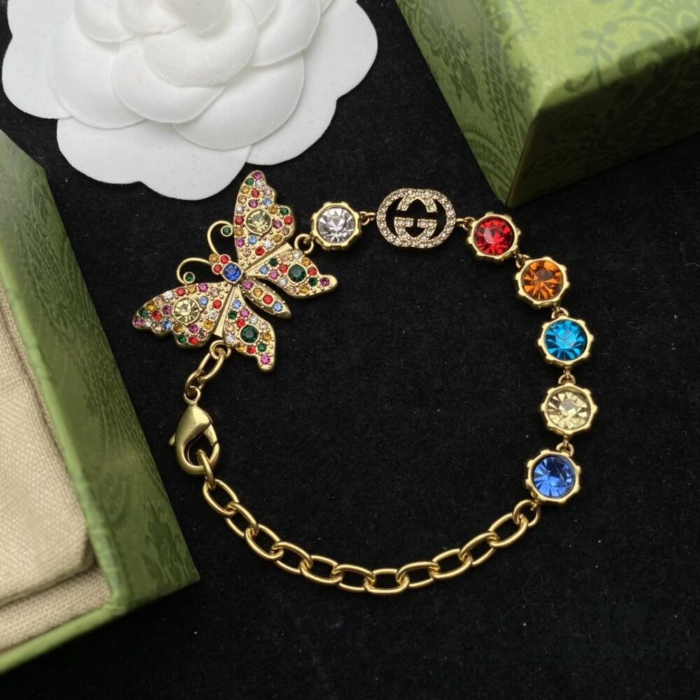 Gucci Double G Butterfly Colored Diamond Elegant Vintage Necklace Bracelet