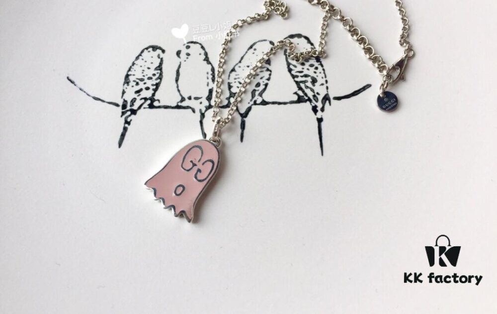 Gucci Ghost Pink Enamel Pendant, Comes with Accessory Box and Dust Bag, Includes 925 Silver Chain, Reversible Design, Excellent Condition, Rare Color from Official Stores, Logo Features the Ghost’s Eyes, Soft Pink Tone, Subtle Without Oversized G Logo, Stylish and Versatile Design
