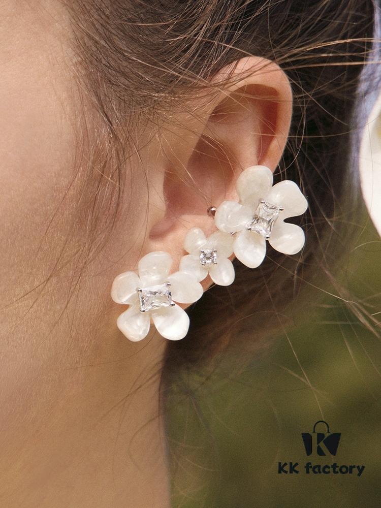 HEFANG He Fang Freesia Flower Cluster Stud Earrings, Minimalist Clip-On Earrings, Cartilage Earrings for Non-Pierced Ears, Women’s Ear Jewelry