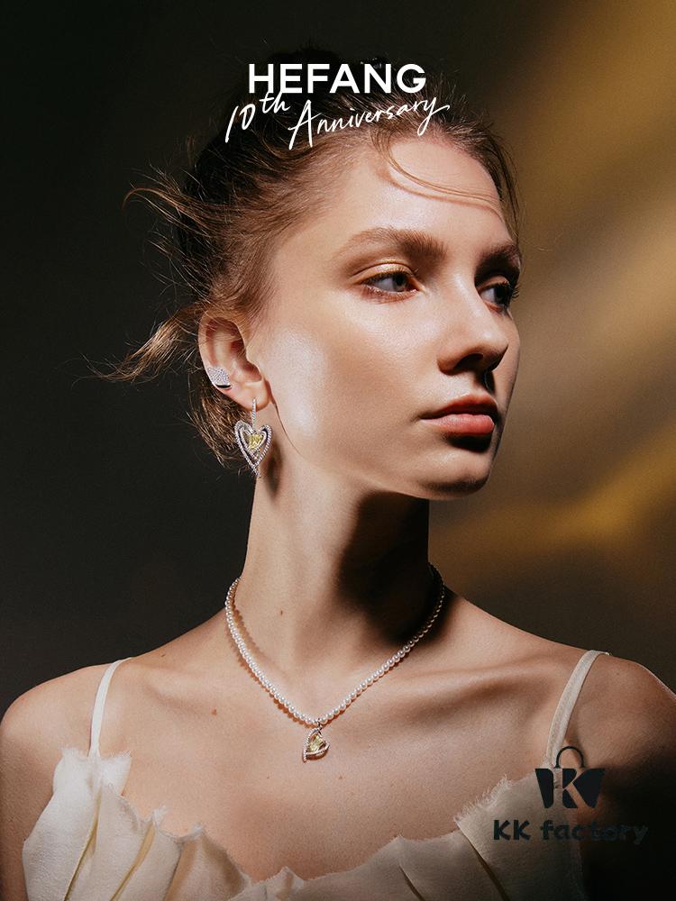 HEFANG He Fang Declaration Ear Thread Earrings with Heart Pendant Diamond Stud Jewelry Gift for Women