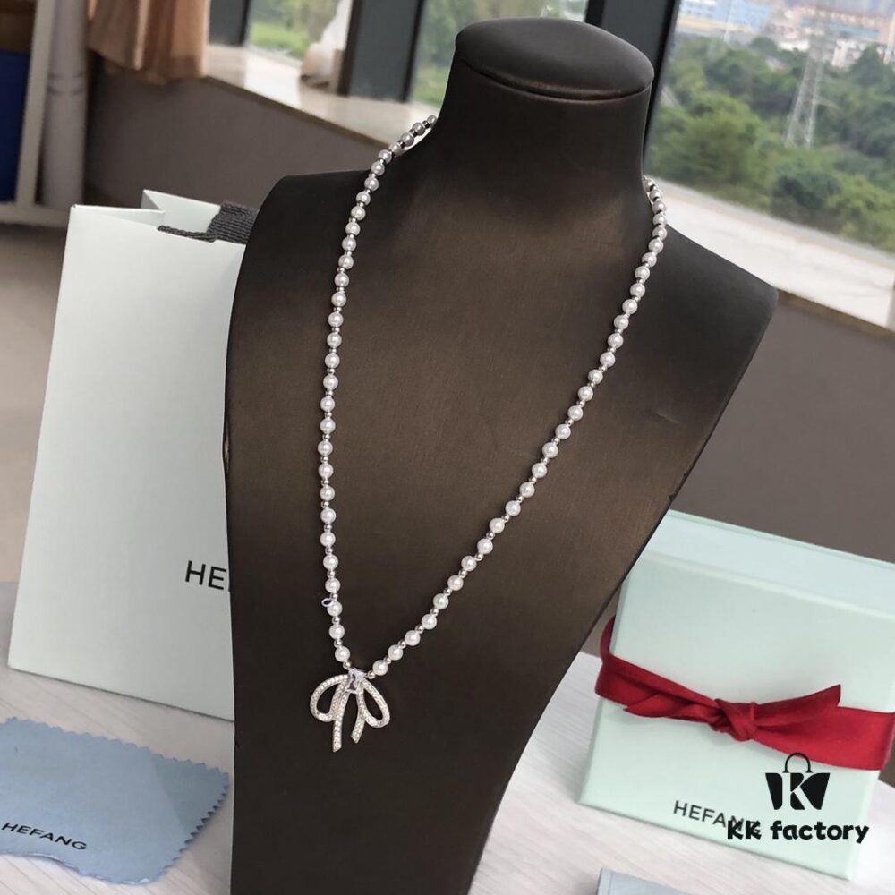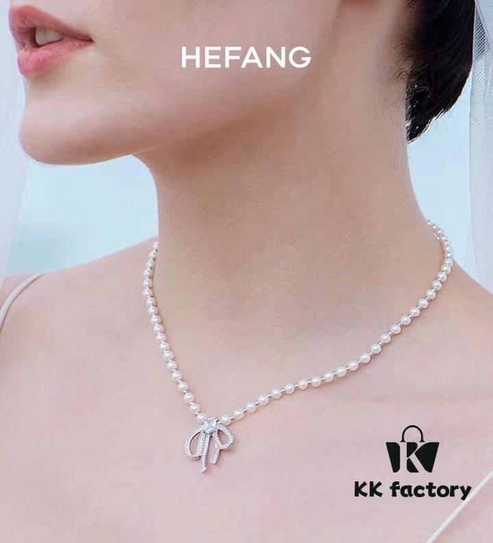 HeFang Jewelry Elizabeth Necklace – Bow Pendant Luxury Wedding Collar Chain, 42cm Adjustable