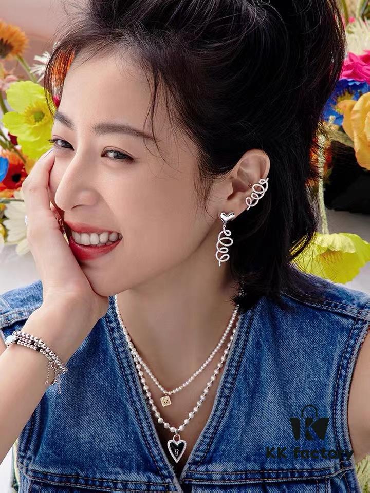 HEFANG Jewelry Cream Twirl Earrings – Limited Edition Ear Studs, Celebrity Style (Zhou Yutong’s Pick), Ideal Gift for Qixi Festival