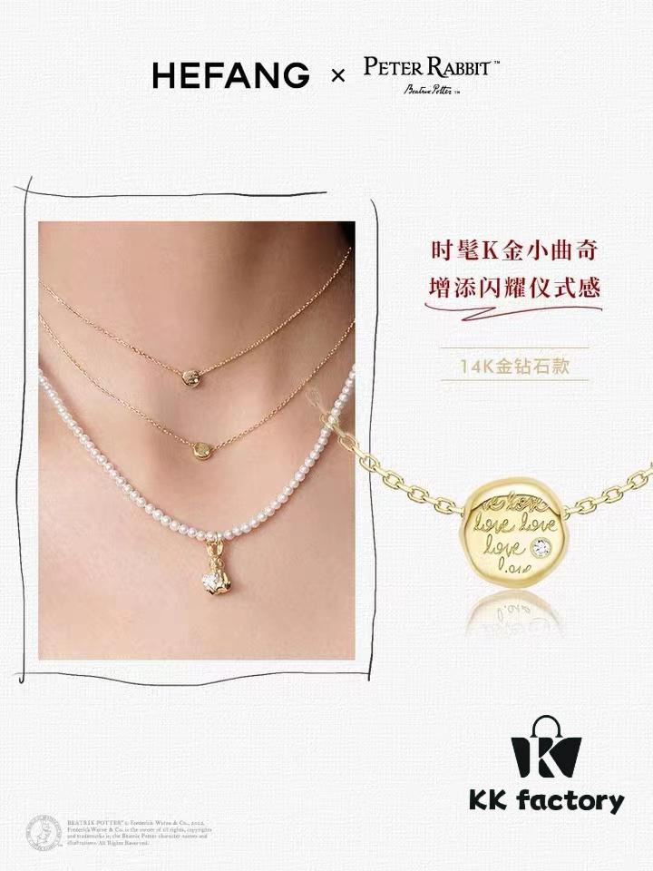 Rabbit Year New Arrival] HEFANG He Fang Bidet Rabbit Confession Square Pendant S925 Solid Sterling Silver Necklace Customized Silver Sweater Chain
