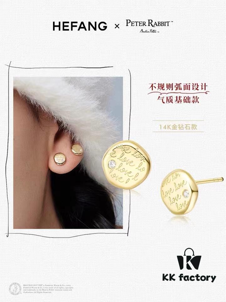 Year of the Rabbit New Arrival Hefang Bi De Tu Gao Bai Cookie Stud Earrings 925 Sterling Silver Full Silver Stackable Earrings Jewelry Gift