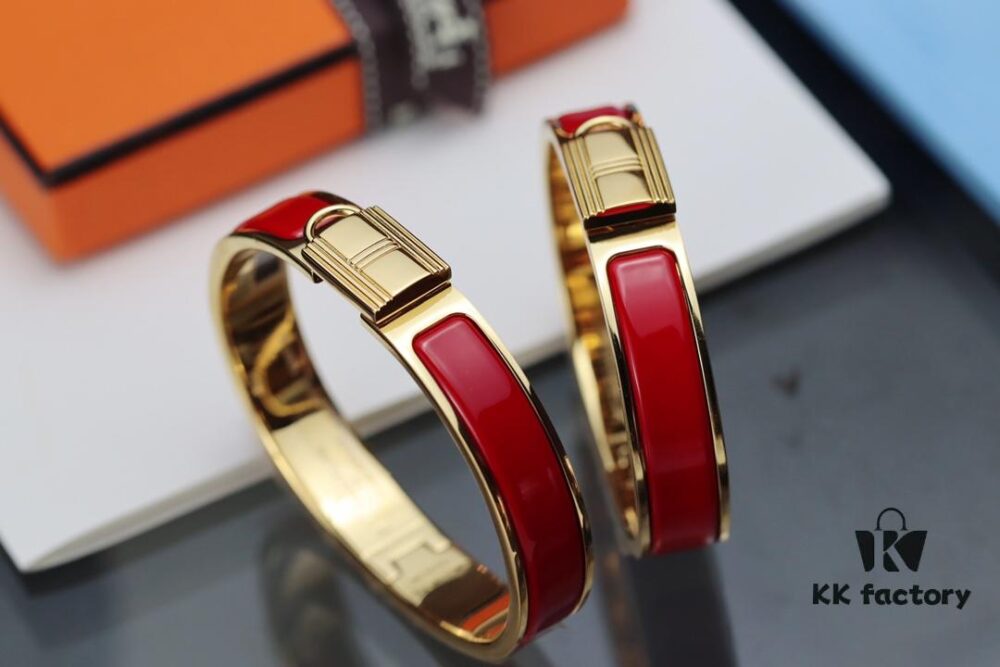 Bestselling Hermès H Cuff Bracelet! One Size Fits Most (17), 5 Colors Available – Must-Have Stylish Accessory, Universally Flattering, Perfect for Any Style, Hand Shape or Wrist Size! Wear Solo or Stacked for Instant Elegance! Red, White, Black, Orange, Light Green – Each Enamel Hue Paired with Rose Gold or Yellow Gold Edging Offers a Luxurious, Eye-Catching Look.