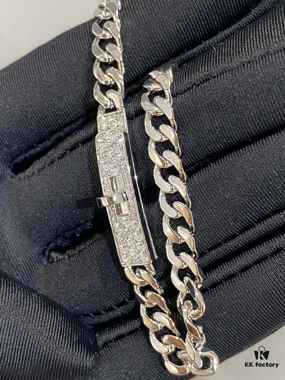 Hermes New Kelly Collection Jewelry, Kelly Gourmette Bracelet with Cuban Chain, Wide Trendy Design, Diamond Clasp with Thick Chain, Exuding Luxury and Elegance