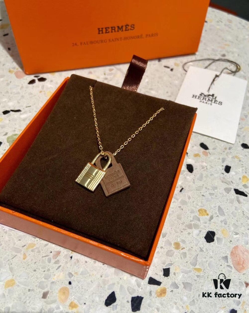 Hermès O’Kelly Lock Necklace, Premium Brass with Thick Gold Plating, Adjustable Chain Length, Multiple Colors Available for Versatile Styling