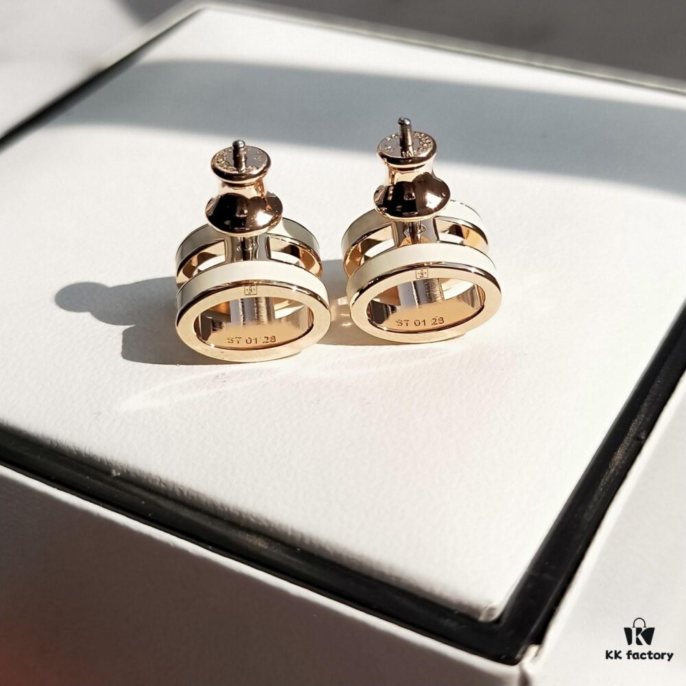 Hermes Pop Platinum-Edged H Enamel Stud Earrings with Authenticity Mark on Back – Latest Classic Enamel Design, Real Photo Details