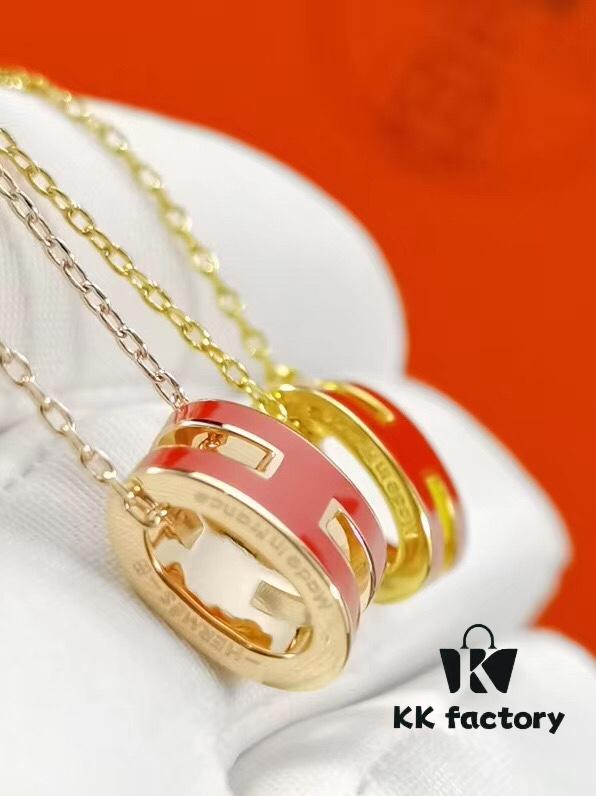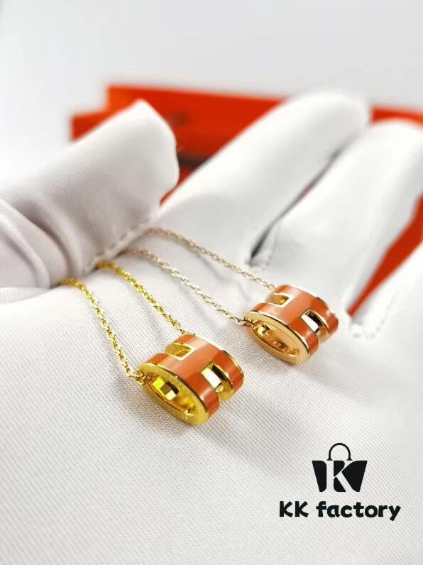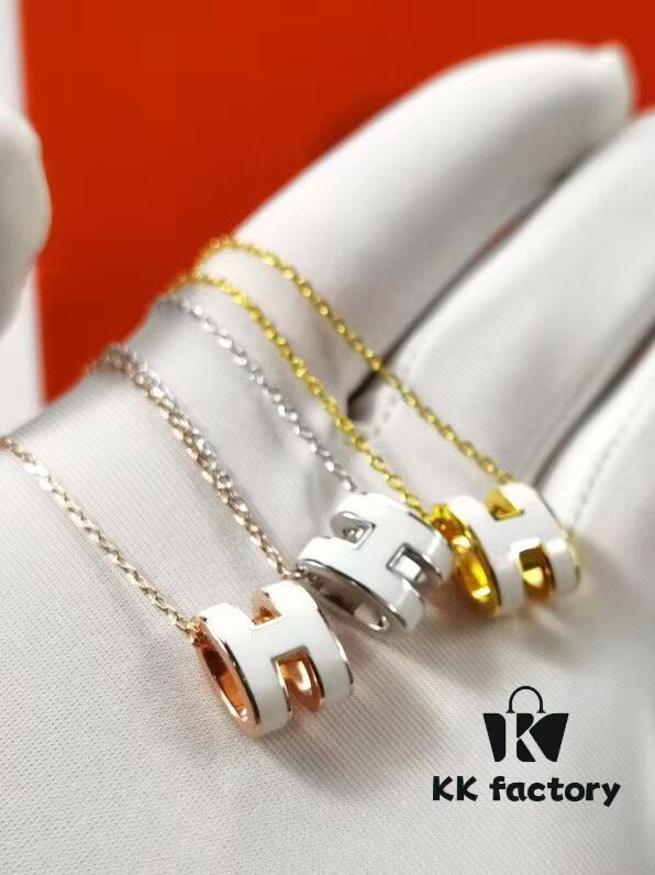 Mini POP Hermès H Necklace, Each with Unique Code, Mijin Electroplating! Hermès Enamel Curved H Necklace, Gold, Rose Gold, and White Gold Chain Options, Official Store Logo Anti-Counterfeit Tag