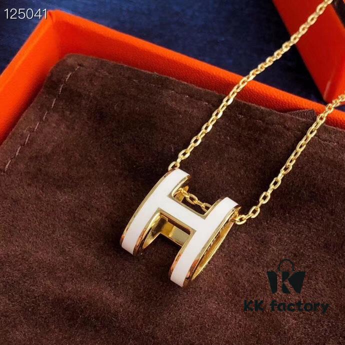 Hermès Enamel Curved H Necklace 2017 Version with Chain Design – Gold, Rose Gold, and White Gold Options