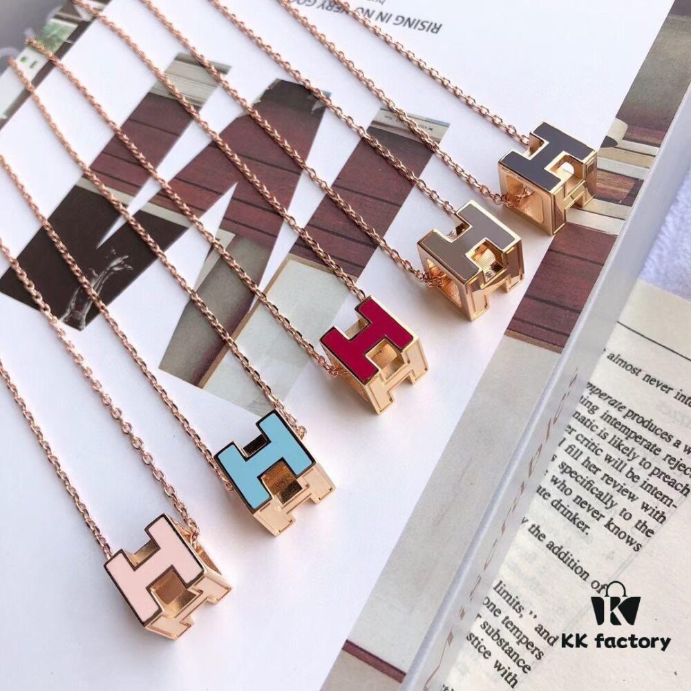 Hermes HERMES Bag Pendant Necklace, 925 Sterling Silver Plated with 18K Gold, Full Diamond and Logo Design, Available in Gold, Rose Gold, and Silver