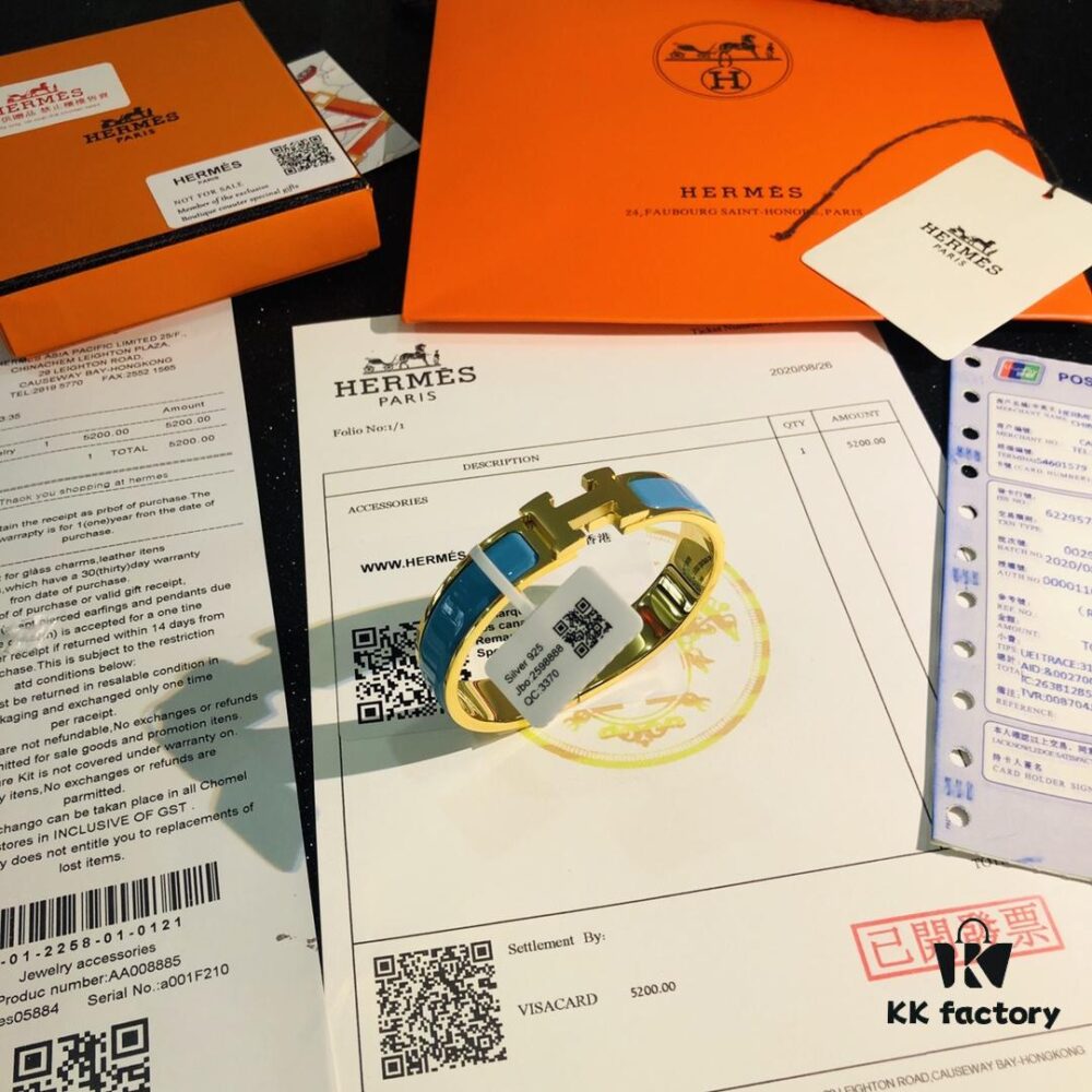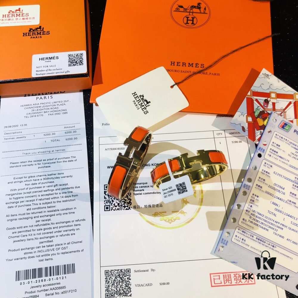 Hermes High-Replica Enamel H Bangle Bracelet in Rose Gold – Full Set with Stickers, Tags, and Receipts – Classic Couple’s Design