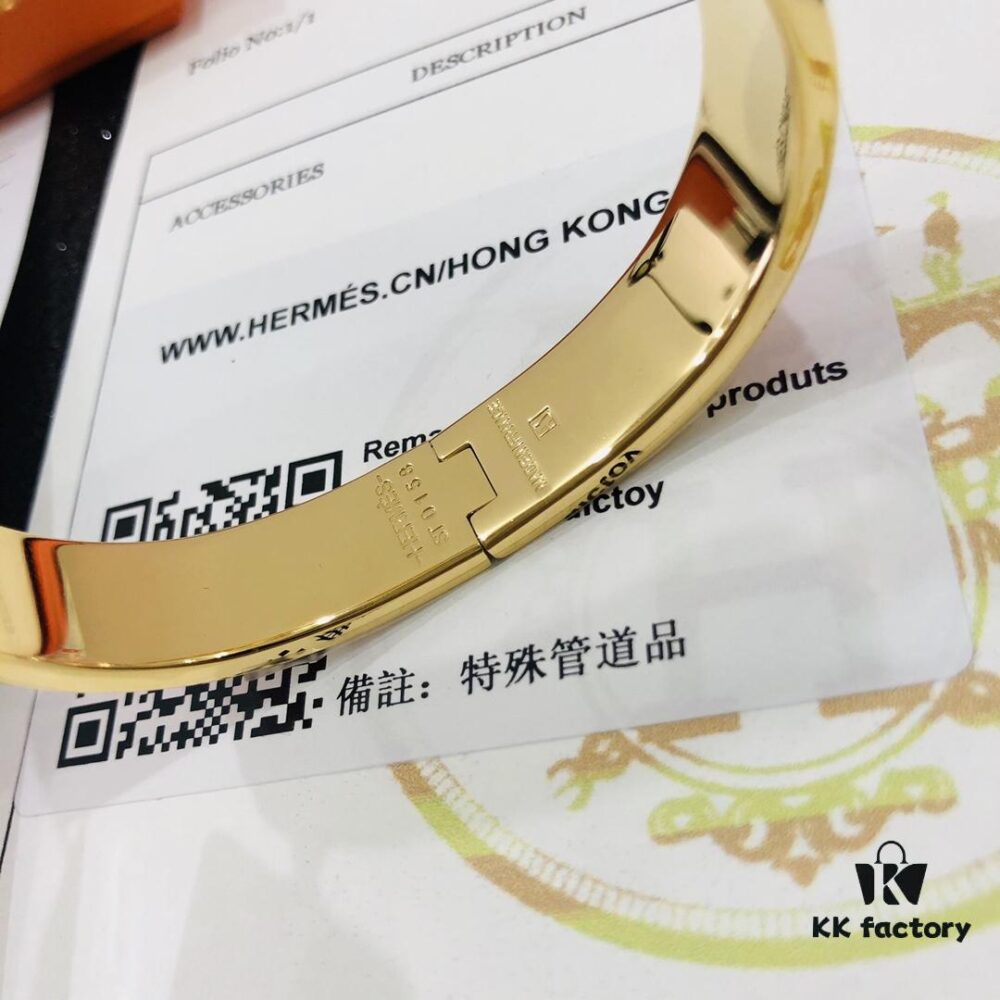 Hermes High-Replica Enamel Clic H Bangle Bracelet in Rose Gold – Complete Set with Stickers, Tags, and Receipts – Classic Unisex Design for Men and Women