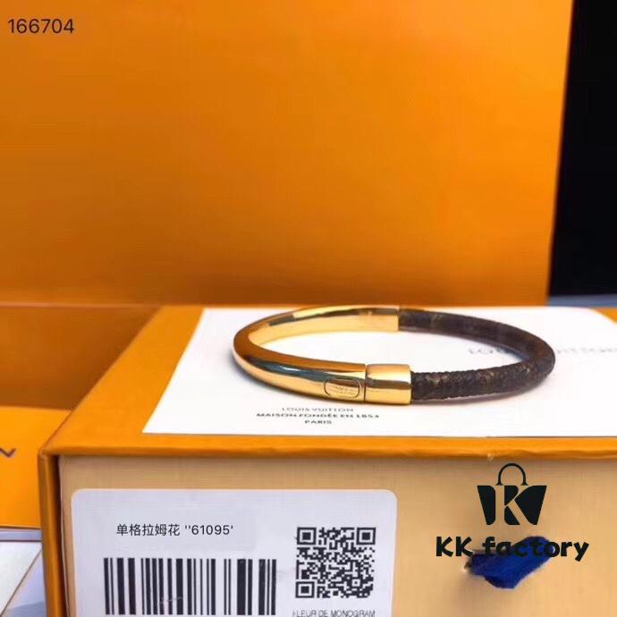 Authentic Prototype Level LV Monogram Leather Bracelet ● Premium Brass Material with Calfskin Lining, Unique Retro-Futuristic Design, Four Patterns Available, Adjustable Unisex Couple Bracelet