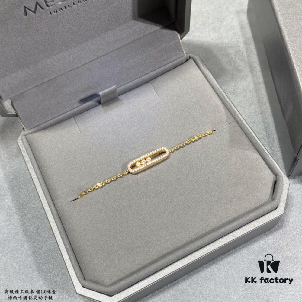 Hot Hollywood’s Trendiest Luxury Jewelry Brand Messika, Semi-Diamond Sliding Bracelet, Elegant 925 Sterling Silver Plated with K-Gold