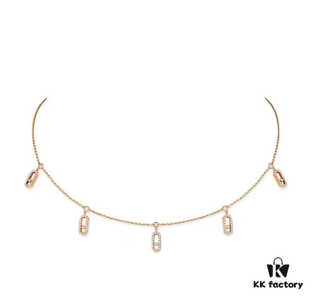 Messika New Arrival Fully Diamond-Paved Five-Slider Necklace, Hand-Welded Craftsmanship, Exquisite Workmanship, Versatile Style, Minimalist Summer Design