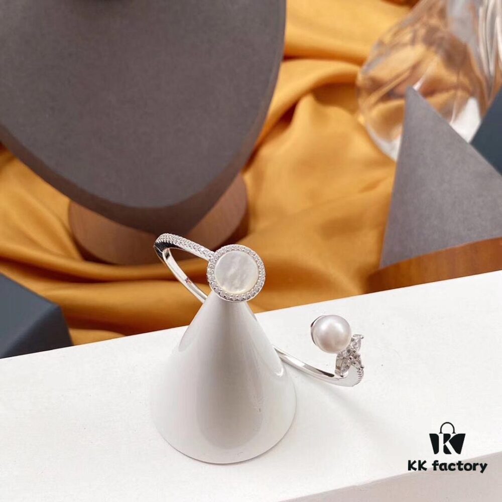 APM Monaco Mother-of-Pearl Freshwater Pearl Open Cuff Bracelet for Women, Vintage Jewelry, Ideal for Couples, Gala Events and Year-End Parties