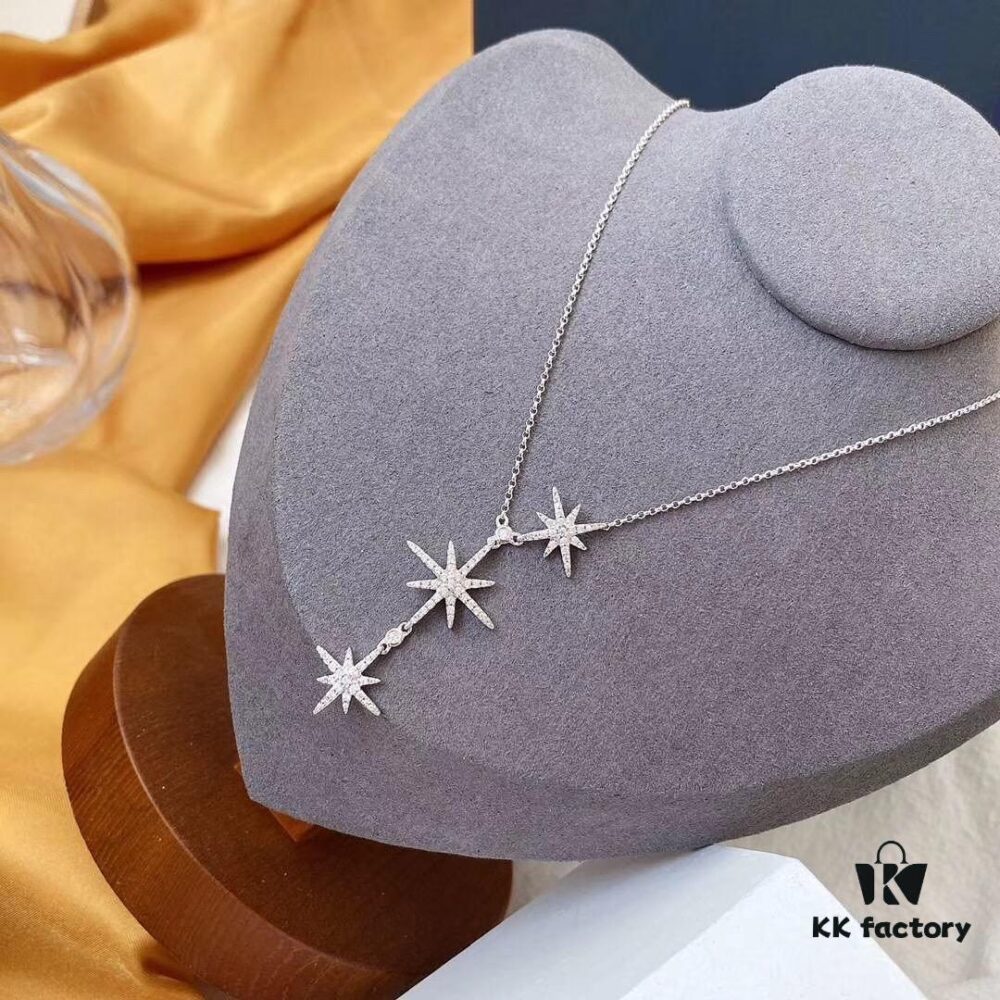 APM Monaco Minimalist Three Shooting Stars Necklace for Women, Six-Pointed Star Collar Chain, Silver Pendant for Sweaters, Elegant Party Jewelry