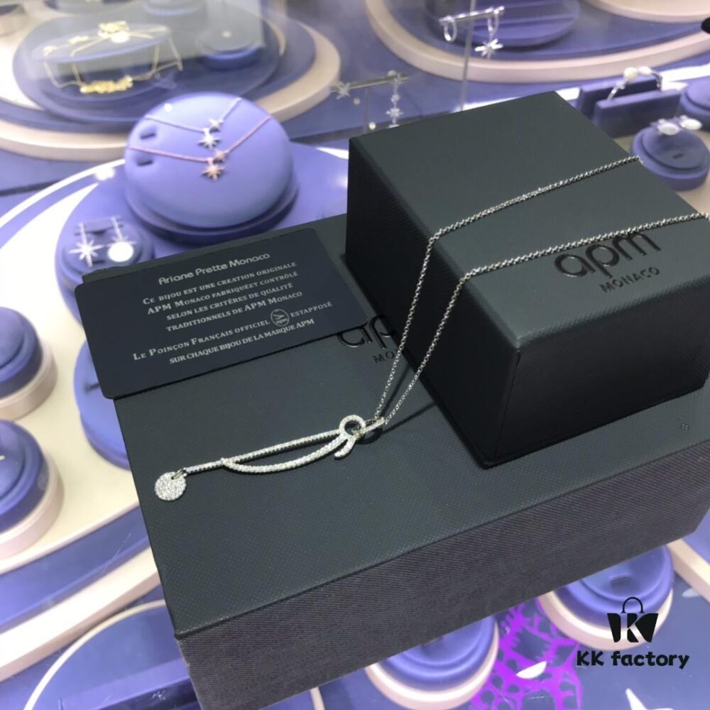 APM Monaco Necklace for Women, Collarbone Chain, French Minimalist Luxury Jewelry, Vintage Silver Pendant Necklaces