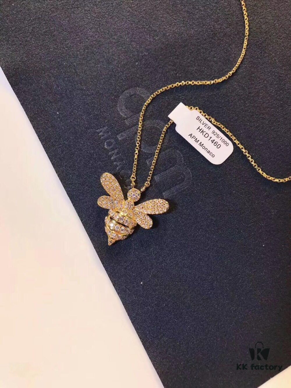 APM Monaco Silver Plated with Gold Bee Necklace with Sparkling Zircon Crystals