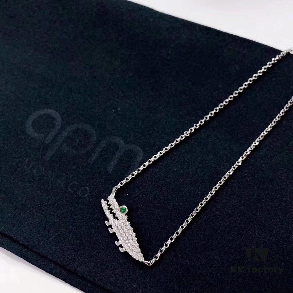 APM Monaco Silver Crystal-Encrusted Crocodile Necklace for Women, Minimalist Autumn-Winter Collarbone Chain