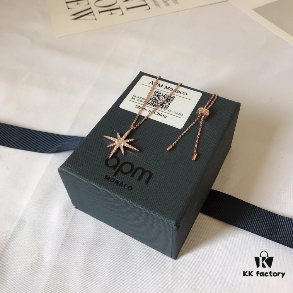 APM Monaco Rose Gold Union Flag Necklace, Stud Earrings, and Bracelet Original Set