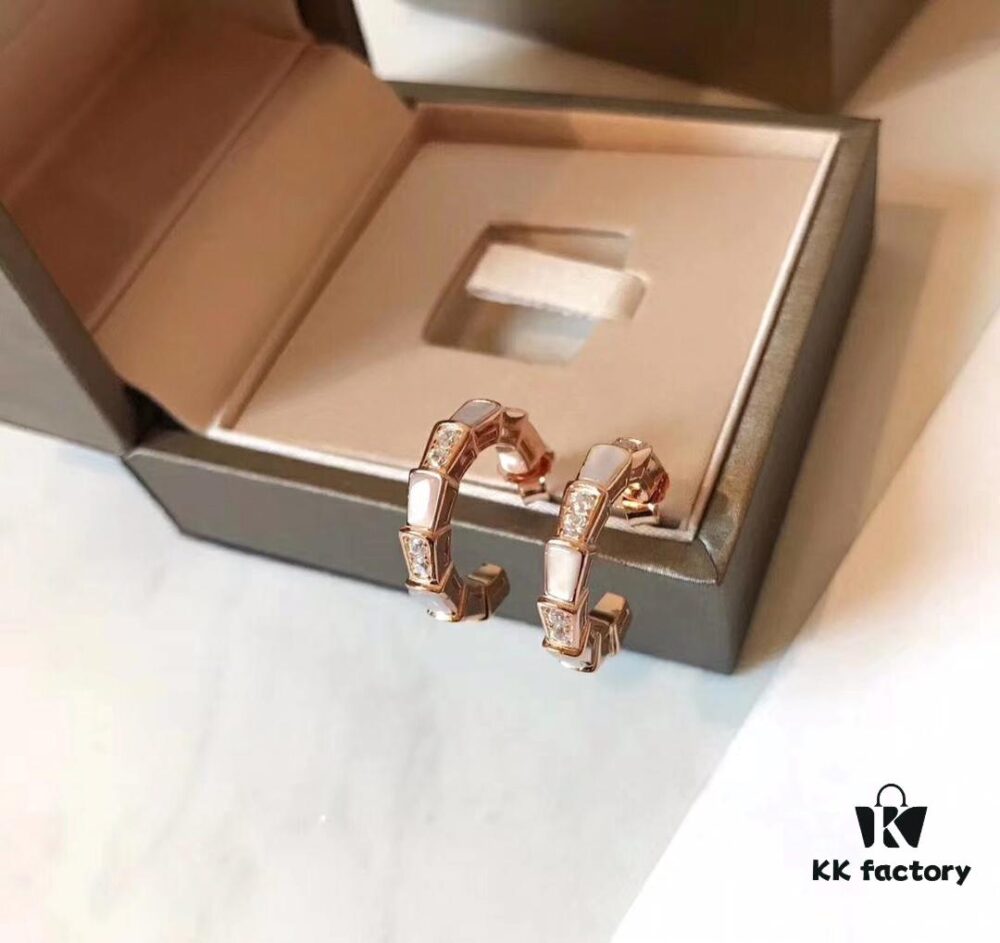 👑【Top-tier Replica】BVLGARI Classic Revival – Exclusive Online, Hot Selling Natural Shell Earrings, Serpenti Design with Sparkling Diamonds, Elegant and Feminine Lines, Thickened 925 Sterling Silver with Gold Plating, Genuine Mother-of-Pearl, Authentic Engraving