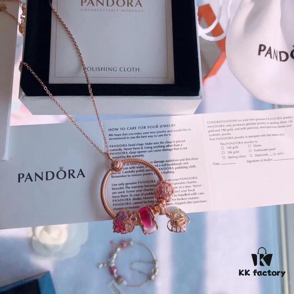 Autumn New Arrival Pandora Official Website Same Style ‘Enchanted Forest’ Rose Gold Letter O Elegance Necklace Set