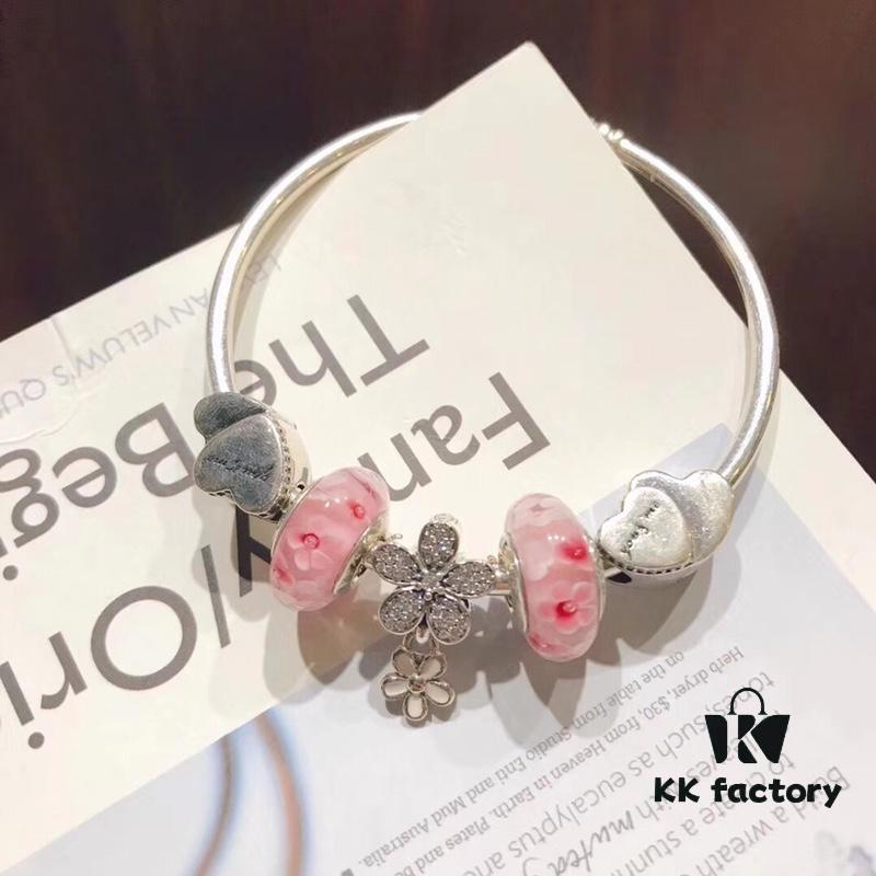Pandora Pandora Peach Blossom Daisy Flower New Arrival! Crafted with counter materials for a perfect 1:1 replica, quality comparable to official store. Featuring peach blossom glass bead, Valentine’s Day double heart charm, and fully diamond-encrusted daisy flower pendant. Made in S925 silver with official packaging!