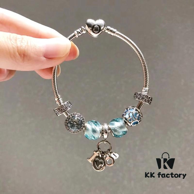 Pandora Pandora Ocean Blue Twist Love New Arrival! Made with counter materials, perfectly crafted one-to-one, quality comparable to official counter! Ocean blue striped glass, ocean blue entwined love, ocean blue cat’s eye, full diamond positioned clasp, I love you flashing diamond pendant, S925 silver comes with official counter packaging!