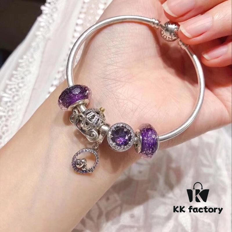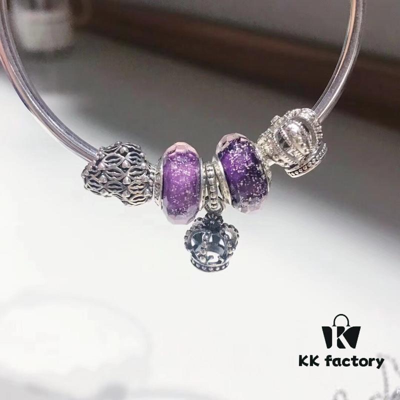 Pandora Pandora Purple Hollow Crown Crown New Arrival! One-to-one Perfect Craftsmanship with Counter Materials, Quality Comparable to Counter! Brilliant Purple Silver Wire Faceted Glass, Hollow Love Kiss, Crown, S925 Silver with Original Counter Packaging!