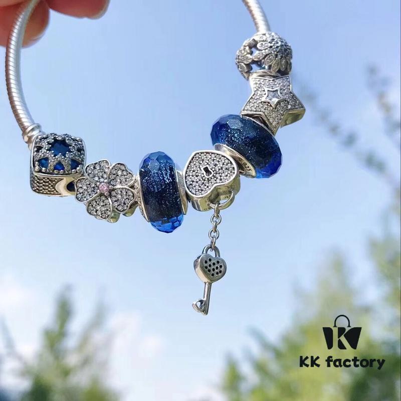 Pandora Pandora Shimmering Blue Heart Key 🔑 New Arrival! Perfectly crafted with counter materials, one-to-one replication, quality comparable to official retail! Featuring shimmering blue faceted glass, sparkling diamond-cut star ⭐️, fully diamond-paved five-petal flower, glacial beauty, blue snowflake ❄️ bead, paired with heart-shaped ❤️ key 🔑 pendant. Made in S925 silver and comes with official retail packaging!