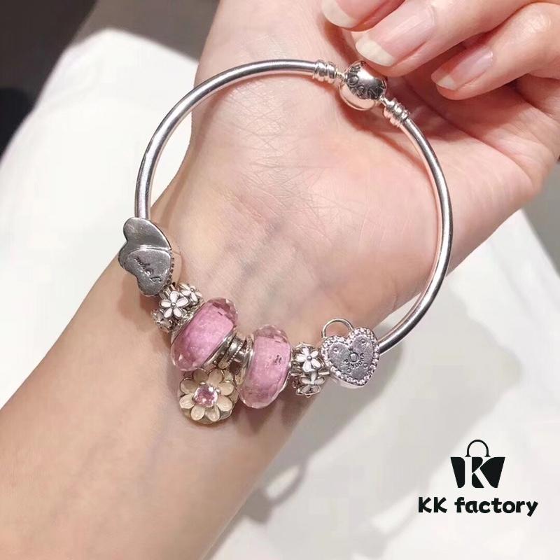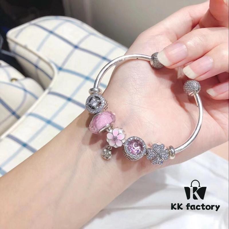 Pandora Pandora Silver Wire Pink Flower Blossom 🌺 New Arrival! Made with Counter Materials, Perfect 1:1 Craftsmanship, Quality Comparable to Authentic Store! Silver Wire Pink Faceted Crystal, Cherry Blossom Spacer Beads, Heart-to-Heart 💕, Pink Diamond Flower Pendant, S925 Silver with Original Packaging!