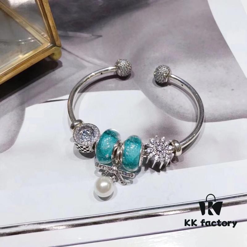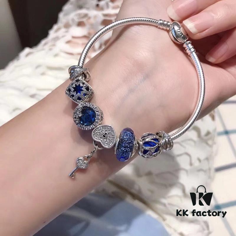 Pandora Pandora Shiny Blue Key 🔑 New Arrival! Imported Thai Shiny Blue Silver Wire Faceted Glass, Sparkling ✨ Snowflake ❄️, Brilliant Blue Luster, Elegant White Cherry Blossom 🌸 Openwork Bead, Sparkling Diamond Key 🔑, Supports Official Counter Cleaning, S925 Silver with Official Packaging! 🍃🌺