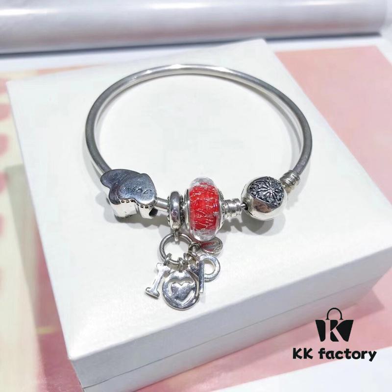 Pandora Pandora Silver Wire Bright Red Love New Arrival! Highest Quality on Market, Supports Counter Cleaning! Made with Counter Materials, Perfect 1:1 Craftsmanship! Imported Original Thai Silver Wire Red Glass, Sparkling Heart, I Love You Pendant, S925 Silver with Counter Packaging!