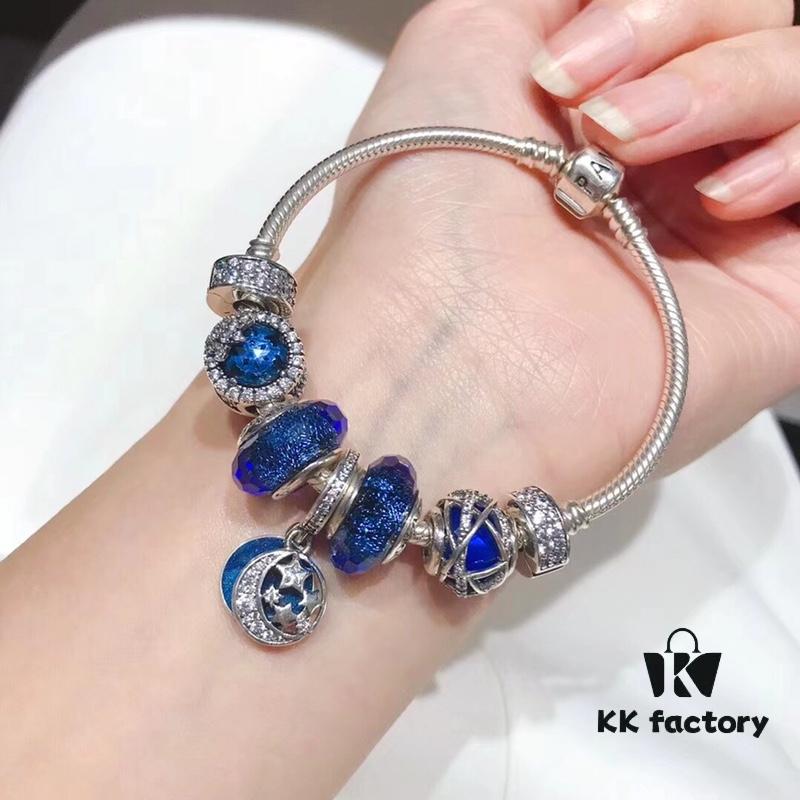 Pandora Pandora Shimmering Blue Star and Moon ☪️ New Arrival! Perfectly crafted with counter materials, one-to-one replication, quality comparable to official store products! Shimmering blue cross snowflake ❄️ charm, sparkling dark blue cat’s eye, fully diamond-paved blue bead, enamel snowflake bead, bow 🎀 clasp, paired with star and moon fairy tale pendant. Made of S925 silver and comes with official packaging!