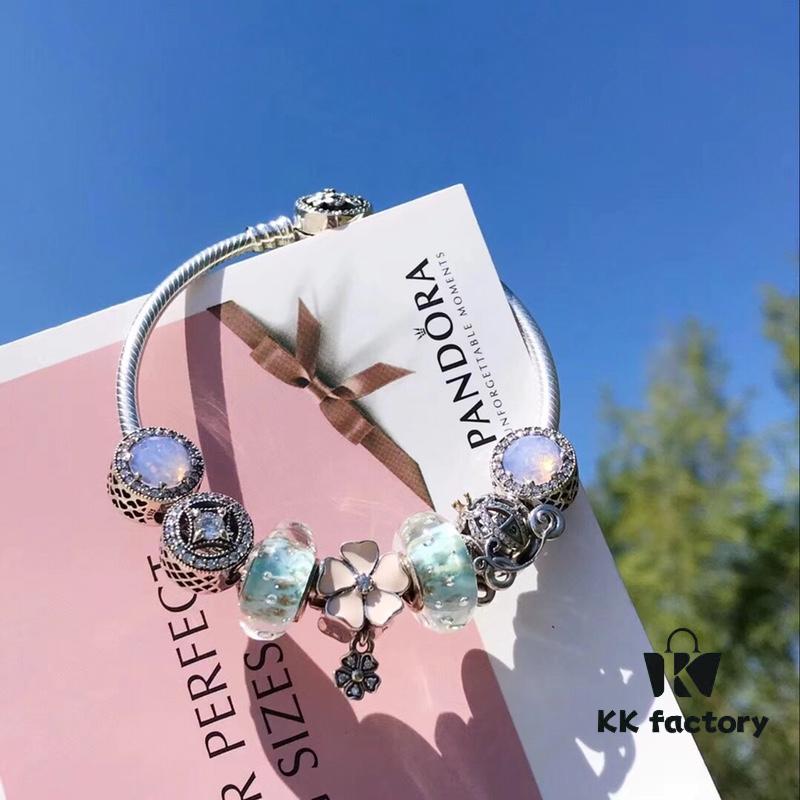 Pandora Pandora Silver Mint Poetry Flower Bloom New Arrival! Made with counter materials, one-to-one perfect craftsmanship, quality comparable to counter products! Silver mint glass, lucky money coin beads, fairy tale pumpkin carriage, sparkling diamond cat’s eye, paired with pink five-petal enamel pendant. S925 silver comes with official counter packaging!