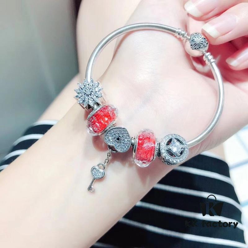 Pandora Pandora Silver Wire Red New Arrival! Highest Quality on Market, Supports Counter Cleaning! Made with Counter Materials for Perfect One-to-One Craftsmanship! Imported Original Red Glass Bead from Thailand, Lovely Heart Key Pendant, Beautiful Snowflake Bead, Prosperity Coin Bead, Beautifying Your Entire Youth. S925 Silver Comes with Official Packaging!