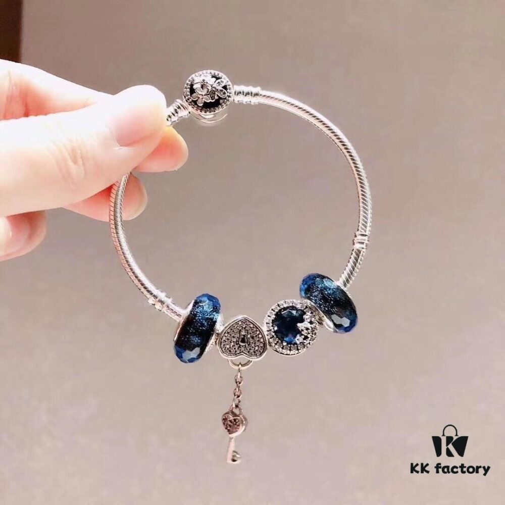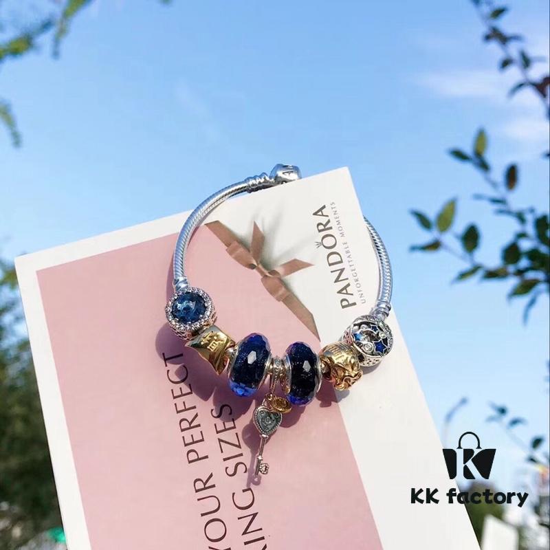Pandora Pandora Silver Wire Sparkling Blue Key 🔑 New Arrival! Perfectly crafted with boutique materials, one-to-one replication, quality comparable to official store products! Nocturnal silver wire with sparkling blue glass, 14K gold-plated ingot charm, lucky pouch, star and moon ☪️ beads, multicolor key 🔑 pendant, S925 silver with original boutique packaging! 🍃🌺