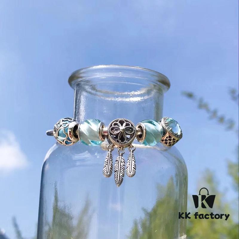 Pandora Pandora Water Blue Spiral Dream Catcher New Arrival! Made with counter materials, perfectly crafted one-to-one, quality comparable to official store products! Water blue spiral glass beads, sparkling water blue cat’s eye, water blue entwined love ❤️, paired with a meaningful dream catcher pendant, simple and refreshing, making this autumn anything but dull. S925 silver comes with official packaging! 🍃🌺