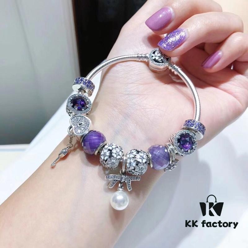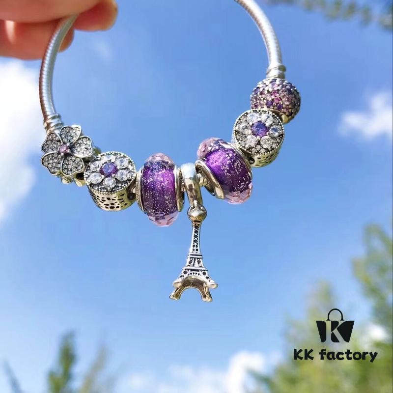 Pandora Romantic Purple Eiffel Tower Tower 🗼 New Arrival! Made with counter-grade materials, perfectly crafted at a 1:1 ratio, quality comparable to official store products! Features purple faceted glass beads, purple sparkling forget-me-not stones, fully diamond-paved five-petal flower beads, rose-purple sparkling diamond beads, paired with the iconic Eiffel Tower 🗼 pendant. Comes with S925 silver and original boutique packaging!
