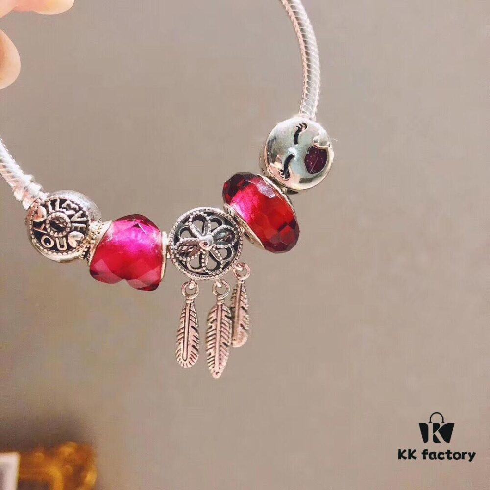 Pandora Rose Dream Catcher New Arrival! Red faceted glass, Love round bead, smiling lip charm, beautifully symbolic dream catcher pendant