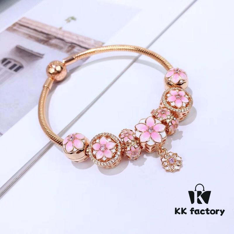 Pandora Rose Elegant Pink Peach Blossom 🌸 New Arrival! High-Quality Replica with Mall-Quality Materials, Perfect Craftsmanship Comparable to Authentic Counter Version! Featuring Silver Wire, Pink Faceted Glass Beads, Delicate Cherry Blossom Spacers, Hollow Pink Rose Peach Blossom Design, S925 Sterling Silver with Original Packaging!