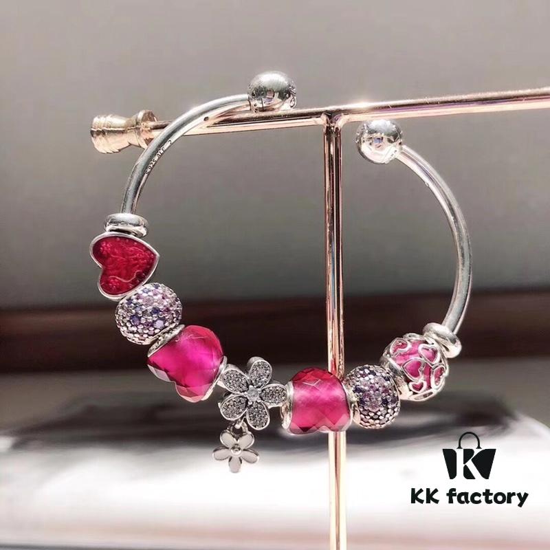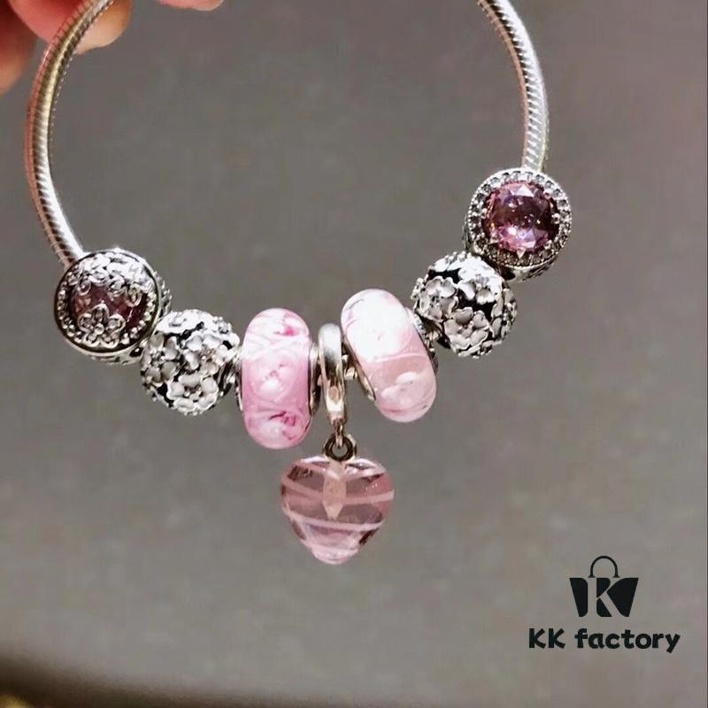 Pandora Silver Pink Elegant Orchid New Arrival! Silver pink faceted glass beads, heart spacer bead, elegant orchid pendant, sparkling diamond-like snowflake charm, S925 silver with official boutique packaging!