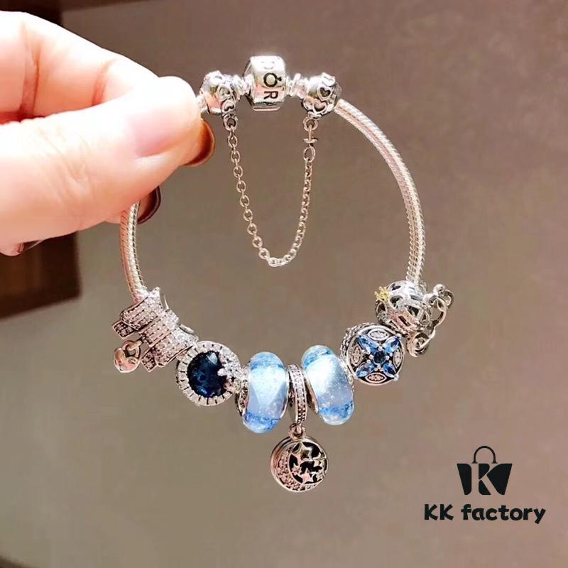 Revival! [Purchasing Level] Pandora New Arrival Blue Galaxy Series! Glow-in-the-Dark Silver Wire Blue Glass Bead, Sparkling Snowflakes, Cross Snowflake, Fairy Tale Pumpkin Carriage, Bow, Custom Made with S925 Sterling Silver, Quality Comparable to Counter Products, Welcome Comparison with Official Counter! Comes with Original Counter Packaging!