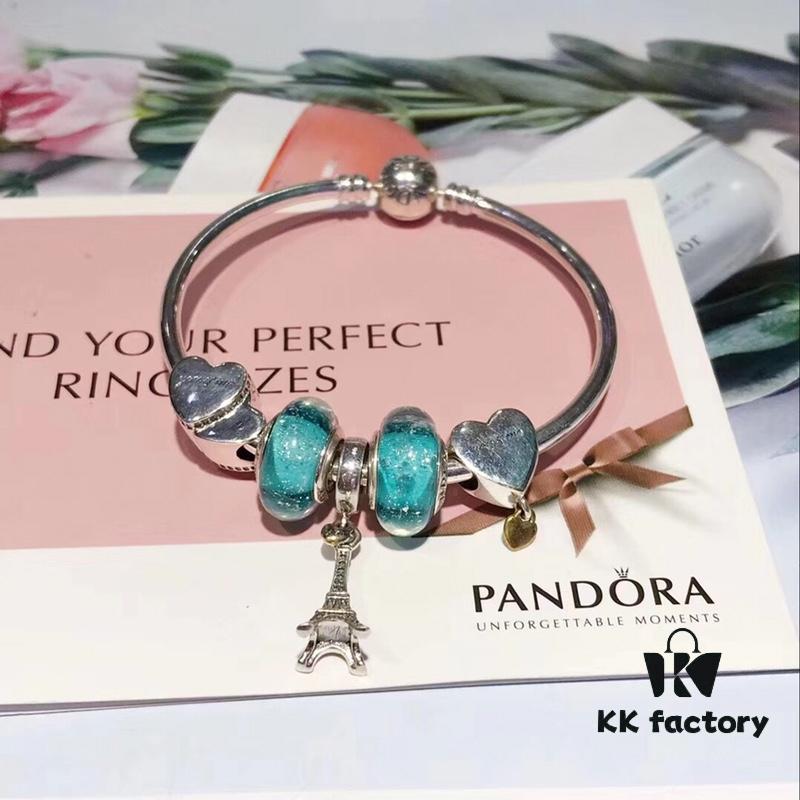 Pandora Elegant Mint Green Eiffel Tower New Arrival! Night Glow Mint Glass Bead, Heart-to-Heart Charm, Eiffel Tower Pendant with S925 Silver