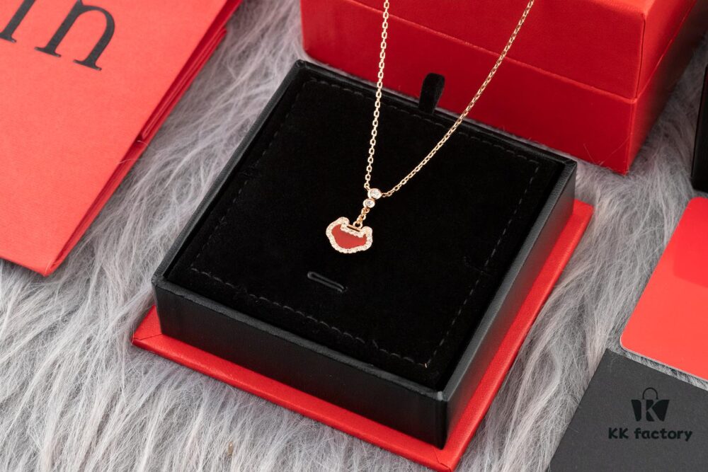 Qeelin Kirin Yu Yi Series Red Agate Necklace-Bracelet, Good Fortune Lock Design