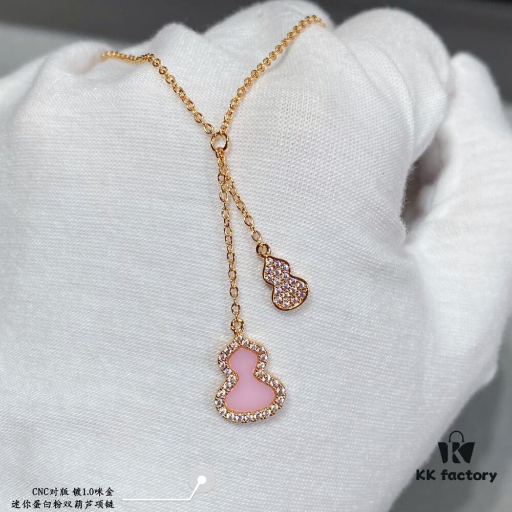V Gold Material Qeelin Wulu Mini Pink Sapphire Double Gourd Necklace