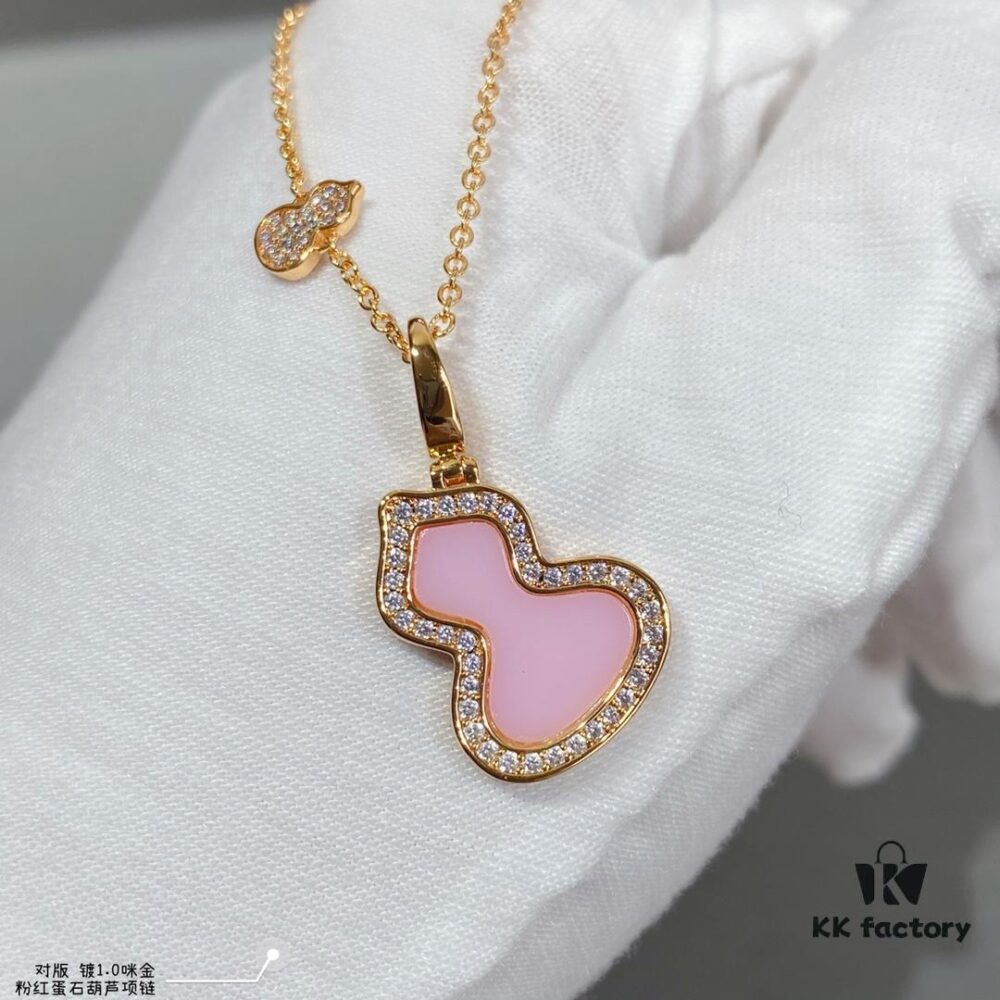 V Gold Material Kylin Pink Opal Gourd Necklace, Stylish and Versatile with Thick Gold Plating, Real Gold Look, Eight-Heart Eight-Arrow High-Carbon Diamond, Small and Exquisite